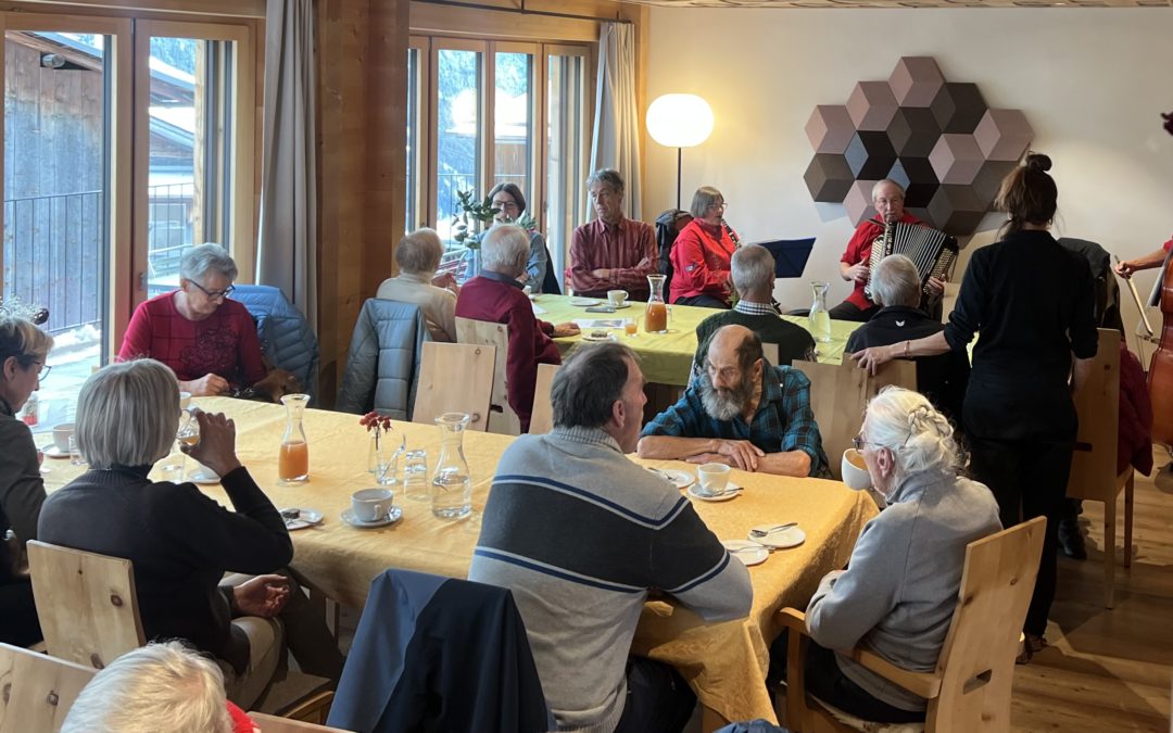 Nach dem Gottesdienst trafen sich alle wiederum in der grossen Stube der Alten Sennerei für Kaffee und Kuchen – und live Musik aus dem Safiental. Danke an die Ländlerkapelle Hunger, Safien, für den stimmungsvollen Einsatz. Es war ein Fest. Und Lebensfreude drückte sich im ganz Kleinen aus: die Finger, die den Takt mitkämpften, die Füsse unter den Stühlen, die durch die Musik einfach bewegt wurden. Mittanzen, ganz unscheinbar.