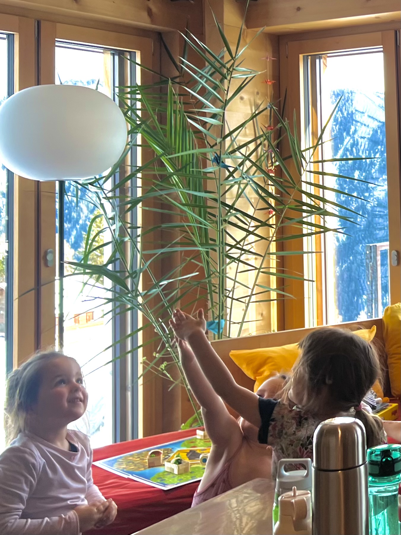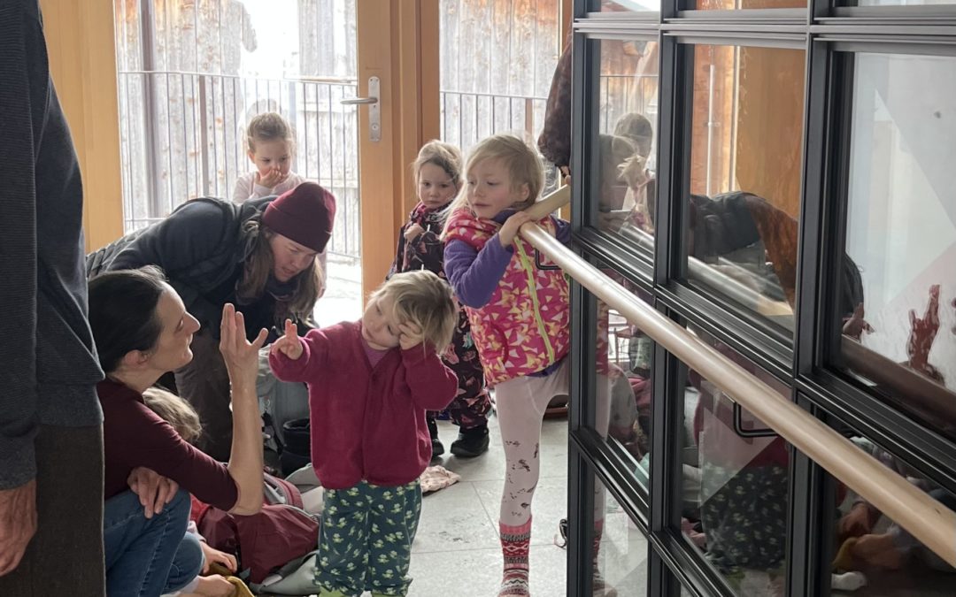 Die Kinder und Begleiterinnen des Wurzelwerks Safiental, einer einzigartigen Kindertagesbetreuung auf Basis der Tagesmutterstruktur mit wald- und naturpädagogischem Ansatz, kamen an einem milden Wintertag in die Alte Sennerei auf Besuch.